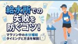 大会が始まったら、ウォーターローディングで貯めた水分をいかに長持ちさせるかが勝負です。給水所はランナーにとってのオアシスであり、戦略的な補給ポイントになります。効率よく水分を受け取り、賢く活用する術を身につけましょう。