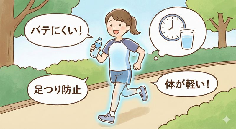 エネルギーと水分が両方満たされた体は、まさに「走る発電所」のような状態です。長時間のランニングでも、バテにくい強靭なスタミナを発揮できます。また、水分がクッションの役割を果たし、筋肉の柔軟性を保つ効果も期待できます。